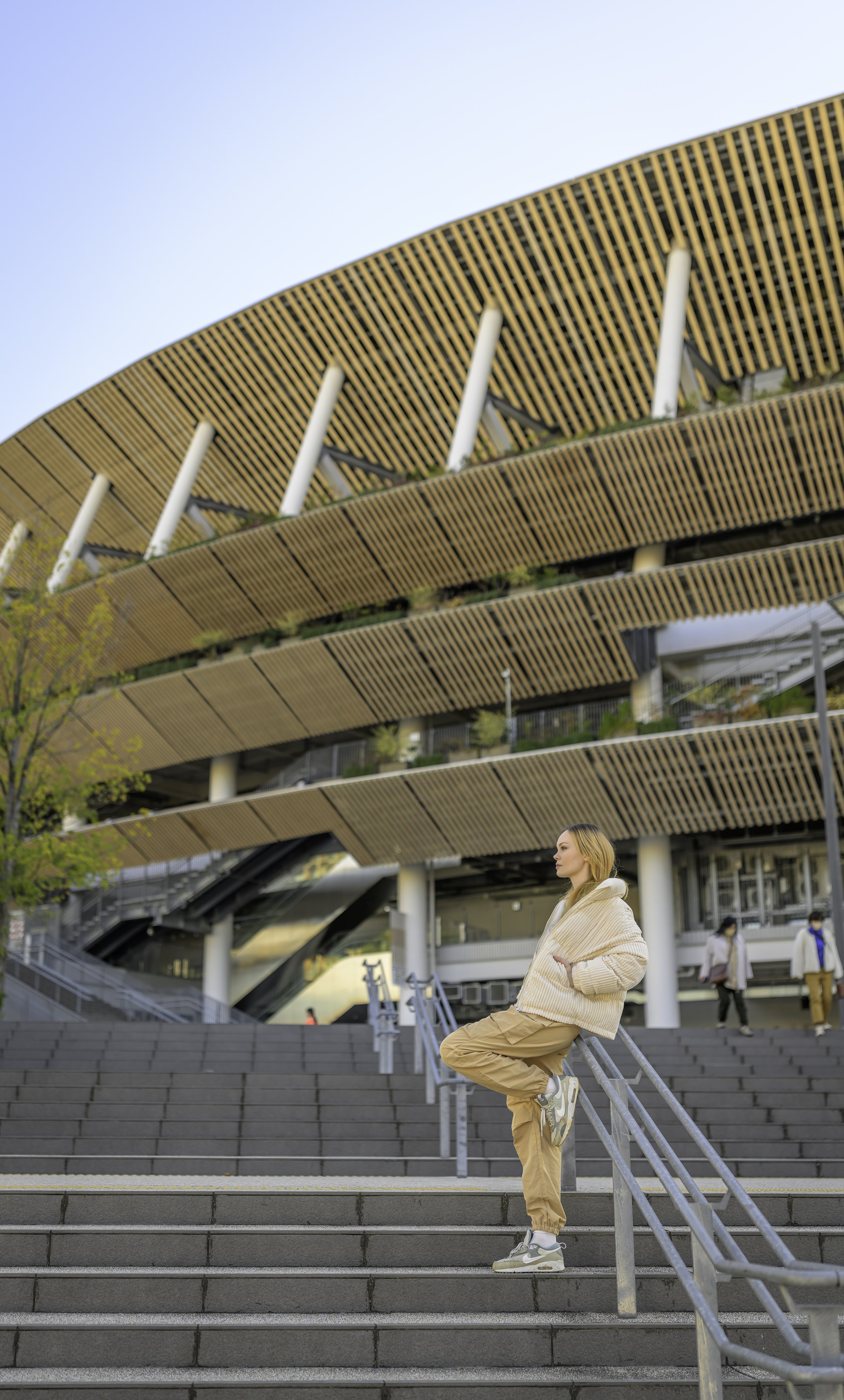 My first ever Photo session to a professional model at the national stadium in Tokyo